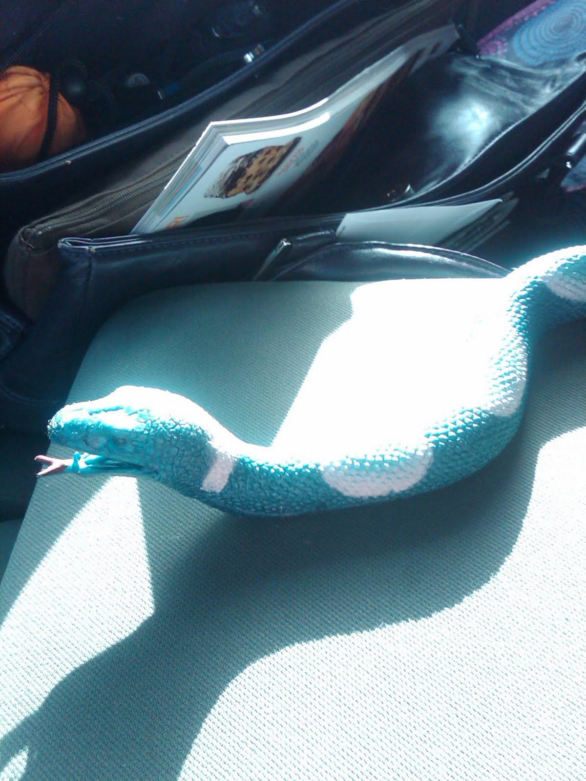 After his triumphant and long-awaited release from his double-bagged home, I decided to let him be free forever. The bags were recycled, and Herbert now resides on the dashboard of my work truck. Which means we spend a lot of time together. I commute and am also in and out of my truck all day for work. So, needless to say, I've gotten pretty used to having this guy around. (by the way, if you haven't read my previous post...Herbert is a fake rubber snake :)
