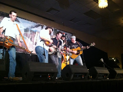 These people are jamming in the elevator at 10:00 p.m. This happens at the Mid-Winter Bluegrass Festival, and it's awesome...